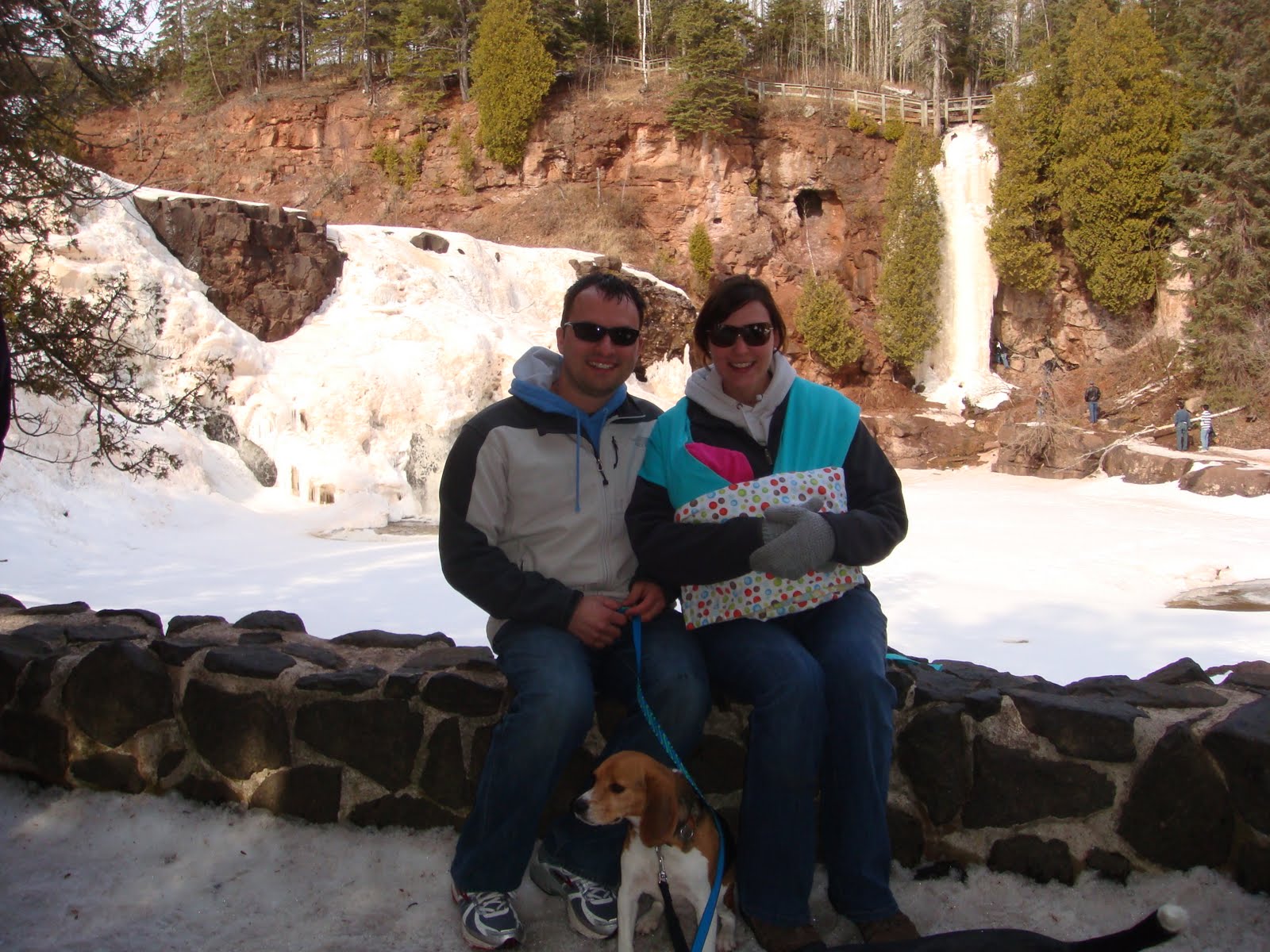 We made a trip up to Gooseberry Falls too. The water fall was pretty neat, there was an over layer of ice with the water flowing underneath. Here is our first family photo there...